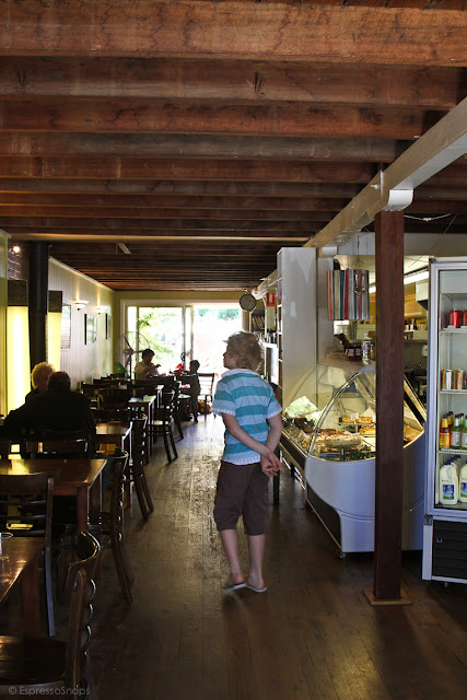I'm not fond of pink - so at first glance I might hesitate to go in, just in case it was more doilie's and tea (I like both these things - but prefer a good coffee in the morning), but stepping inside it's warm & earthy and relaxed. A courtyard out the back and seating out on the main street just meant you could find somewhere perfect to sit no matter what the weather. Oh, and the main street of Gunning is both quiet and pretty - you can stand in the middle to take a photo (which I did) and sit out the front to enjoy the sun (we did this too). The selection of homemade treats meant it wasn't just a coffee stop. Next time will be lunch!